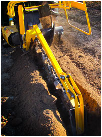 We also have a smaller trenching machine. This machine is ideal for smaller trenching work and can fit into small areas. Click to read more